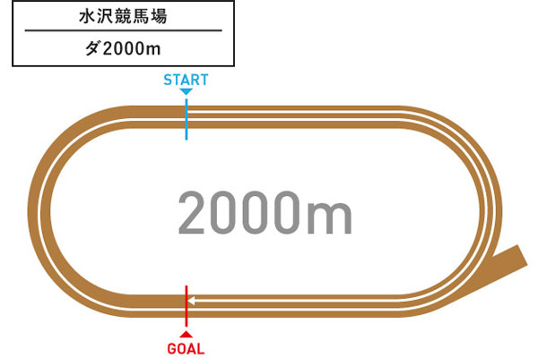 水沢競馬場は、1周1200mの平坦コースで、直線は245m。2000mは2コーナー過ぎからの発走で、向正面一杯を使って先行争いできるため、枠順の有利不利はさほどない。しかし、小回りでゴールまでコーナーを6回まわるため、最初のコーナーまでにある程度の位置を取れる先行力は必要となる。