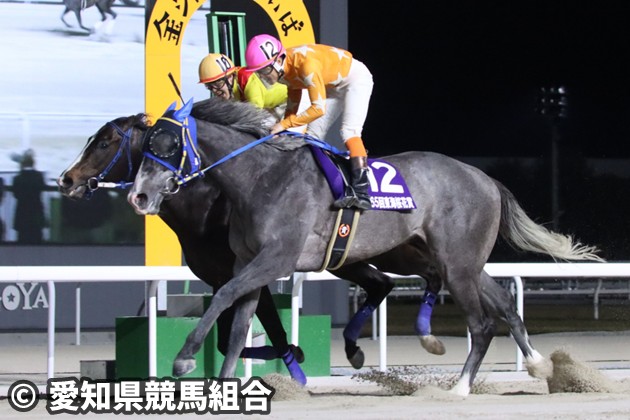22年4月に3歳でデビュー後、パーフェクト連対で勝島王冠(23年)、ブリリアントC(24年)、大井記念(24年)と重賞3連勝を飾った。それ以降は交流重賞を中心に挑戦。昨年の帝王賞JpnIで5着になるなど、高みに向かい続けている。南関東以外のレースは盛岡のマイルチャンピオンシップ南部杯JpnI(8着)以来2度目。初の名古屋遠征に坂井英光調教師は、「前は行き脚と道中の行きっぷりが今ひとつのところがありましたが、今は先行力が出てきたので、小回り・2100mも問題はないと思っています」とコメント。坂井厩舎の大将格参戦には、「川崎記念JpnI(7着)は力を出し切れなかったので不完全燃焼でした。もっと走れる馬なので、交流重賞のタイトルを取らせてあげたいです」と力を込めた。