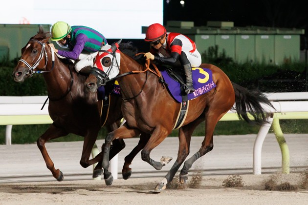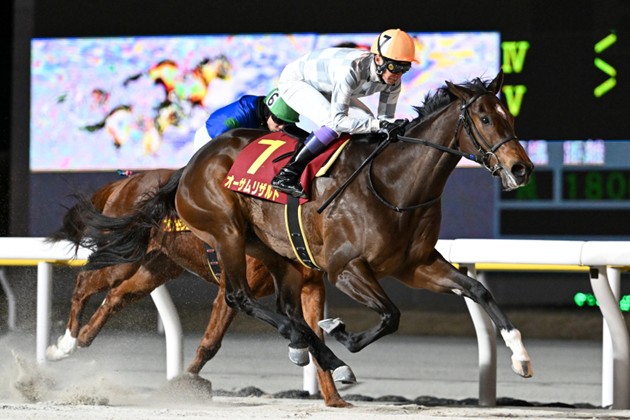 22年10月のデビュー戦を制すと、その後もコンスタントに白星を重ね、今年2月に3勝クラスを突破。オープンで2戦着外に終わると、大井・荒山勝徳厩舎に移籍した。転入初戦となった10月3日の千葉ダートマイル(船橋1600m)を快勝。南関トップマイラー・アランバローズを直線で鋭く差し切って強烈な存在感を放った。今回、相手が一気に強化されるが、未知の魅力十分。荒山師も「前走は届かないと思ったが、きっちり差し切ってくれた。牝馬とは思えないムキムキの馬体で胸前の筋肉が凄い。前走から1F距離が延びるのは歓迎なので、強い相手に割って入れれば」と上位争いに期待していた。