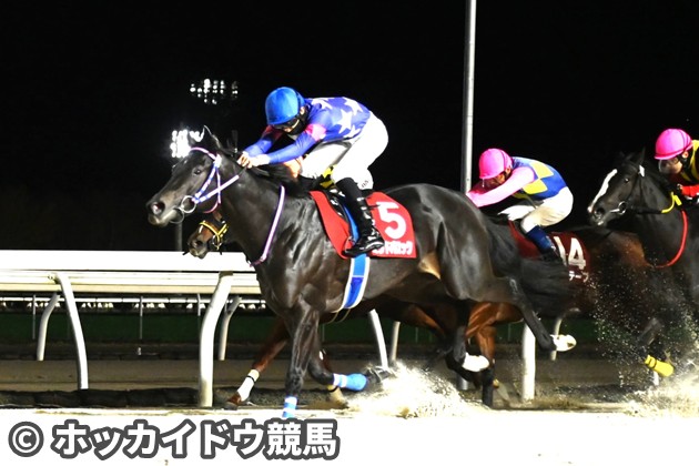 スーパーフレッシュチャレンジを59秒2で逃げ切り、世代最初の勝ち星を挙げた。不良馬場とはいえ、2歳4月で1分を切るタイムを記録したのは驚嘆。この内容から函館2歳ステークスGIIIを意識し、ウィナーズチャレンジの勝利を目指し、3戦目できっちり勝ち上がった。軽い走りをするとはいえ、ダノンレジェンド産駒で芝の重賞ではさすがに厳しかった。その後は疲れを抜いて再調整され、ネクストスター門別で重賞初制覇を飾った。「騎手の進言でチークピーシズを着用しましたが、抜け出すと相変わらずフワっとする面は見せていた」と、田中淳司調教師がレースを振り返ったように、まだ幼い面がある中で完勝だった点は、さらなる上積みを期待できる。1週前追い切りとなる11月16日、全日本2歳優駿JpnIを目指すベストグリーンと併せて3F35.6-1F12.3をマーク。大人しい性格から長距離輸送も苦にしないタイプで、小回り向きの器用さを活かし、大輪を咲かせる。
