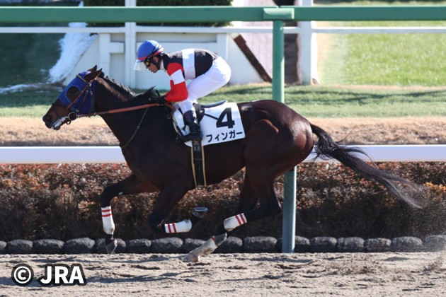 「大型馬なのに、繊細なところがあります」と、フィンガーを評するのは管理する田中博康調教師。その影響か、デビューから3戦にわたり2着惜敗を繰り返した。しかし、4戦目となった前走では2着に1秒9もの差をつけて大勝。それまでのうっぷんを晴らすかのような走りに、田中博調教師は次のように語った。「新馬に関しては正直、仕上がり途上という感じはありました。使われながらすっかり良くなってきたとはいえ、前走の圧勝ぶりには驚かされました」。気性的には真面目ということで「中距離タイプで力の要るダートも向きそう」と語る田中博調教師は次のように締めた。「なので今回の条件は合うはずだし、とにかく中間も元気一杯なので、期待しています」。