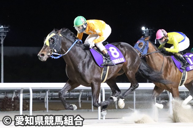 前走の兵庫ゴールドトロフィーは、好スタートから逃げの手を打ったが、向正面で内からハッピーマンに並び掛けられる苦しい展開ながら、4着に渋太く頑張った。兵庫遠征は6回と慣れたもので、長距離輸送による馬体減はなくなった。前走後は門別競馬場の坂路で乗り込まれ、1月17日と1月24日に13-13ペースで駆け上がり、1月31日は3F38.3秒-1F12.5秒と初めて3F40秒を切るタイムをマークした。1週前の2月12日は、僚馬ストリームと併せ、3F35.6秒-1F12.4秒で1馬身先着し、順調度をアピールした。名古屋の馬場は内を避けるケースが目につくが、門別もその状況になることが多いだけに、馬場への適応に不安はない。道営スプリントで勝利に導いた吉原寛人騎手を配し、9回目のダートグレード挑戦で悲願の優勝を目指す。