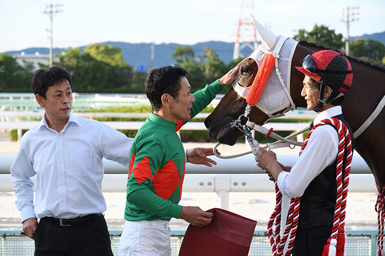 追い切りの動きがすごく良く、枠も良かったので折り合い重視で乗りました。園田では1勝で、少し勝ちきれない面があったので直線は半信半疑でしたが、しっかり勝ってくれましたし、今日は最高に馬と会話できました。乗り心地がすごくいい馬で、心身ともに成長してくれば、まだまだやれると思います。