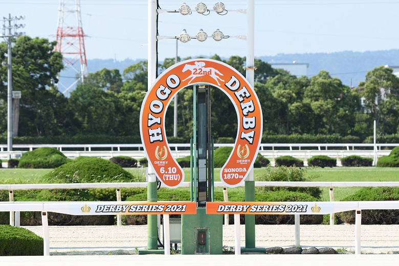梅雨はまだ明けていないというのに、最高気温31度に達した快晴の園田競馬場。3度目の緊急事態宣言下ではあるが、政府の指針に沿って園田競馬場では6月2日からファンの入場が再開された。2年ぶりに観客から応援を受けての3歳頂上決戦は、誘導馬も3頭総出で盛り上げた。