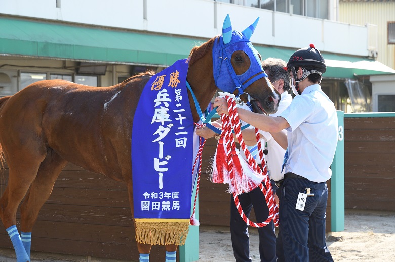 「(ダービーを勝つのは)ちょっと早いんじゃないかと思いますけど、滅多に巡ってこないチャンスなのできっちりモノにできて嬉しいです」と、開業7年目でダービートレーナーに輝いた渡瀬調教師。鞍上の大山真吾騎手も4年前の兵庫ダービーで外から末脚を伸ばすもブレイヴコールにアタマ差届かず2着など、これまで何度も悔しさを味わってきたが、待望の兵庫ダービー初制覇となった。