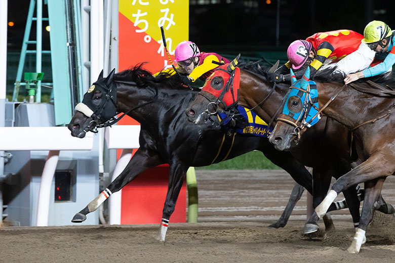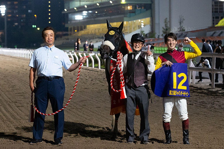 5月の初勝利から4連勝で射止めた初の重賞タイトル。鞍上の仲野騎手も2014年6月のデビューから7年、通算45勝目がJpnIタイトルとなった。「妄想ですけど、こういう日を描き続けてきました」というのは偽らざる本心。「このかたちが勝利に近いと思いました。一気に来られると厳しいと思っていたので、相手がじわっと迫ってきたのも助かりましたね。ほかの馬が来れば、こちらも手応えが良くなるので」。まさしく、理詰めで考えて乗る仲野騎手の真骨頂。ハイペースで逃げて相手に脚を使わせ、持ち前の勝負根性で粘り切るという、思い描いたかたちでビッグタイトルを手にした。