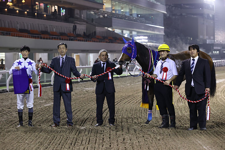 スティールルージュは門別・フルールカップに続く2つ目のタイトルを獲得。2歳牝馬が、20時間近くをかけて長距離輸送を敢行し、コース、左回り、距離と初物尽くしの中で結果を出したのは、本当に立派だ。