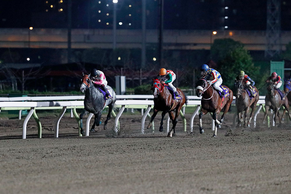 船橋のカプリフレイバーが好ダッシュを決めて先手を奪うと、その外に大井のギシギシがつける。リュウノユキナとシャマルが3番手で並んで3コーナーを回ると、その後ろにルーチェドーロも接近して直線を迎えた。