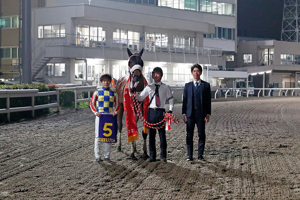 シャマルは前走でJRA3勝クラスを勝ったばかりで、重賞は初挑戦。補欠から繰り上がったチャンスをものにした。「人馬ともに(大井の)ナイターが初めてでしたし、前走で3勝クラスを勝ったばかりでしたが、ここでどれだけの競馬ができるか期待はありました」と、自身もダートグレード初制覇の川須栄彦騎手。スムーズに外に持ち出し、シャマルの能力を最大限に発揮させる好騎乗だった。ワンターンのダート1200メートルしか経験しておらず、1周競馬への対応が鍵になるが、叩き合いで下した相手がリュウノユキナなら、今後の活躍は約束されたようなもの。楽しみな4歳馬が現れた。