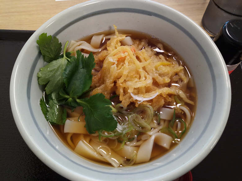1分ほど待つと席に案内され、注文してからまた待機。数分後、一緒に行った友人の「きしめん」が到着しました。味の感想を聞くと「想像どおりのきしめんです」とのこと。