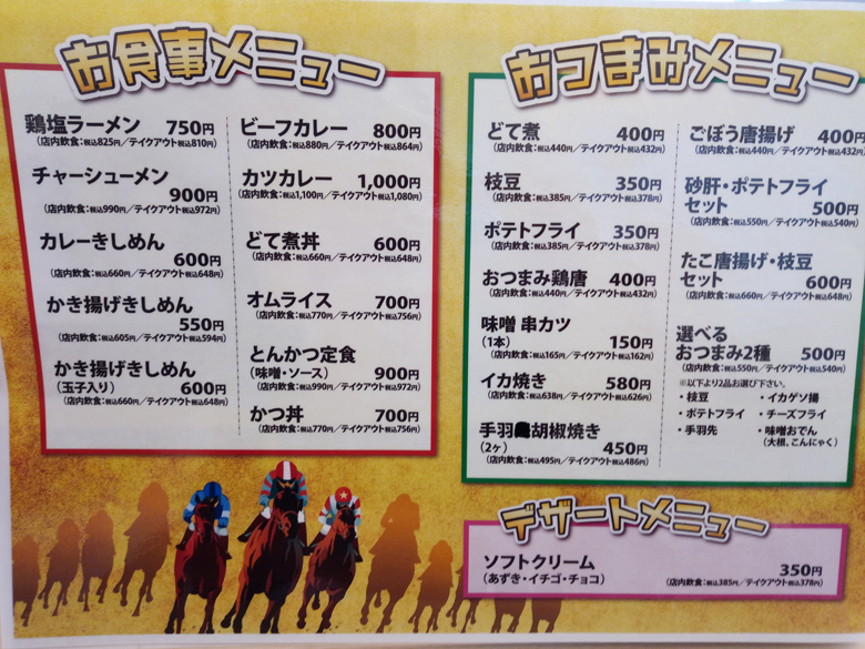 実際のところ、今年になっても競馬場での食糧事情がよくわからないという状況。しかし開幕日に行ってみると、スタンドの2階には食堂がオープンしておりました。