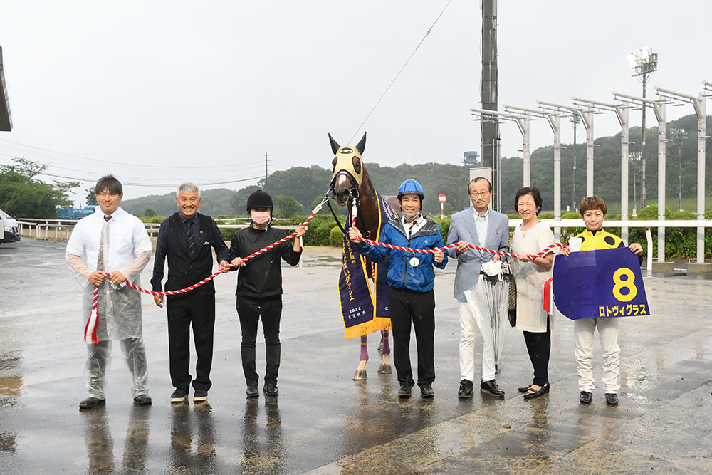 ロトヴィグラスはJRA2勝から20年5月に佐賀へ転入。1300、1400メートルでもA級準重賞1勝、重賞で掲示板内に3度進出と活躍を見せていたが、900メートルではここまで3戦して2勝、2着1回(勝ち馬ドラゴンゲート)と、出走馬中最上位の距離実績を持っており、その力を存分に発揮しての重賞初制覇となった。