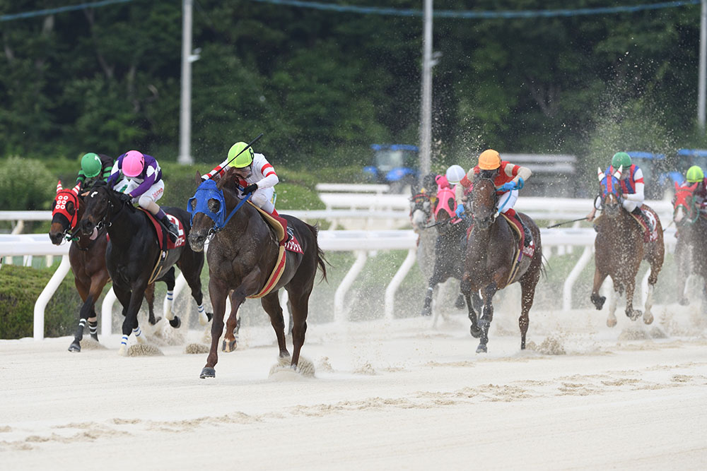 好スタートから先手を取ったのは、この舞台で4連勝中のイズジョードリーム。最終的に1番人気に推されたダノングッドがその直後に控えたが、砂を嫌がって後退し、3コーナーでは先頭から約5馬身も離れてしまった。それを尻目に2番手外から先頭に立ったのはブレイクフリー。しかし、ダノングッドが直線に入って外に出されるとグイグイと伸び、5馬身差で連覇を決めた。2着は道中同じ位置にいたダノンジャスティスで別府厩舎のワンツーフィニッシュ。ブレイクフリーは3着で、地元馬で最も支持を集めたメイプルグレイトはスタートで滑るような形で出遅れ、7着だった。