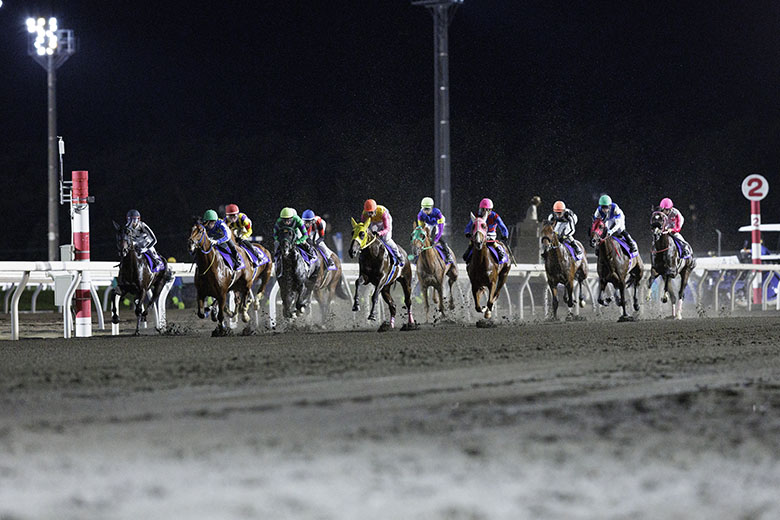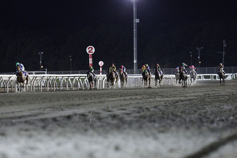 ライバルも黙ってはいられない。2番人気は3連勝中のサンオークレア。前走古馬相手に同距離の1800メートルで完勝したボニーマジェスティが3番人気、逃げ馬のエンリルが4番人気だった。パドックでは一瞬雨が降り、この日に向け仕上げて来た12頭の馬体をナイトレースの照明がいっそう輝かせた。