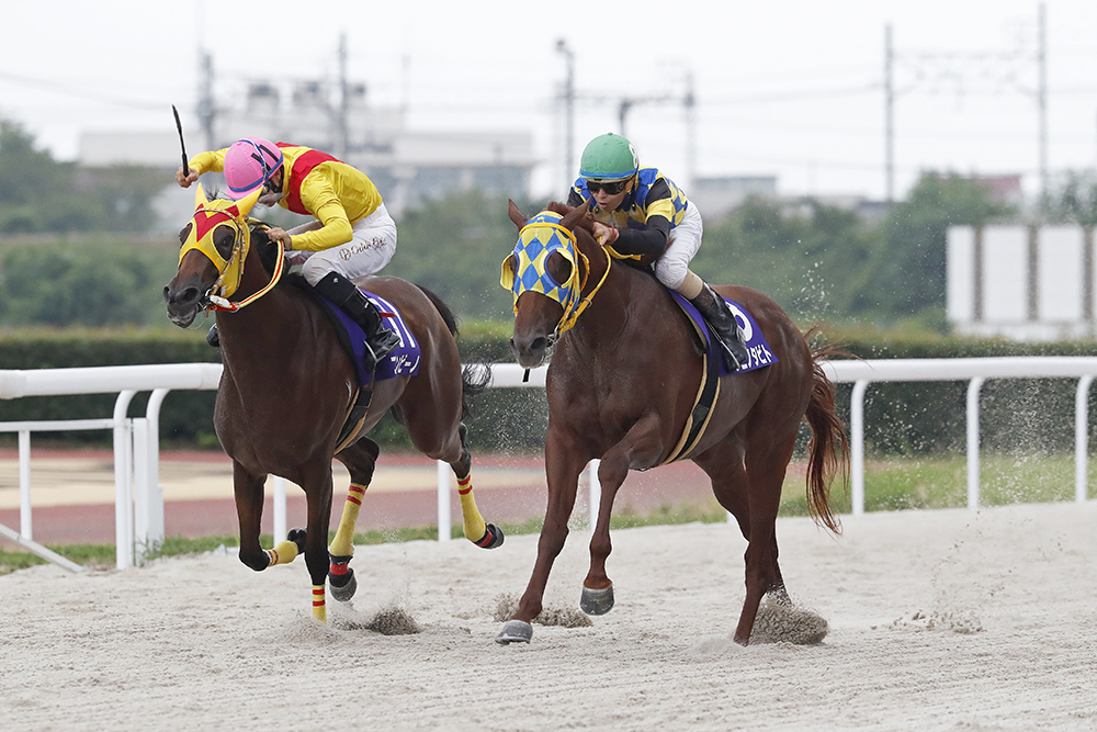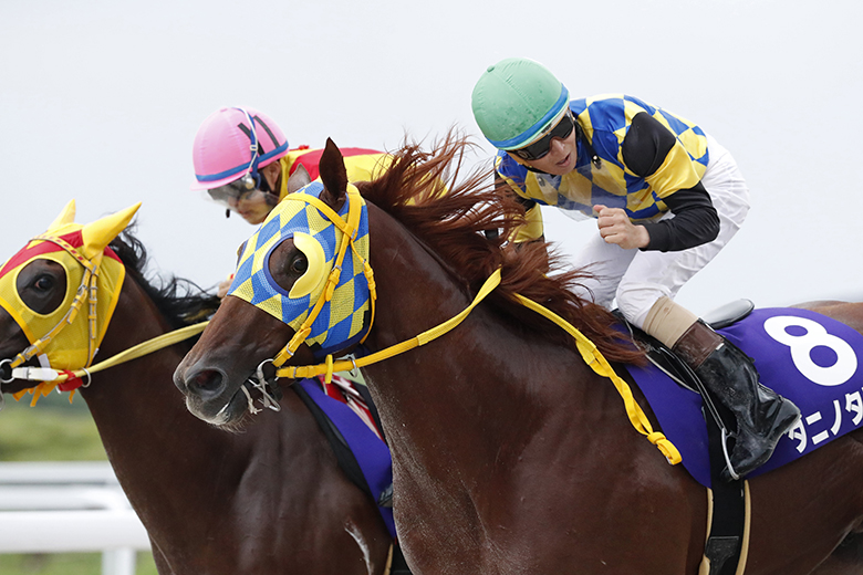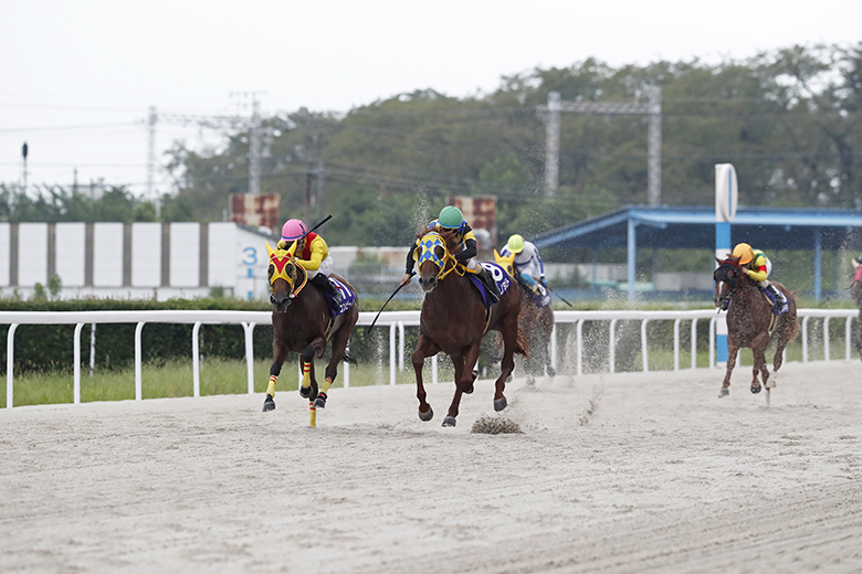 逆にイイネイイネイイネは加速がつかず、先頭から少し離れた3番手に後退。2周目の4コーナーからはコンビーノとタニノタビトの一騎打ちになった。