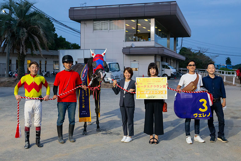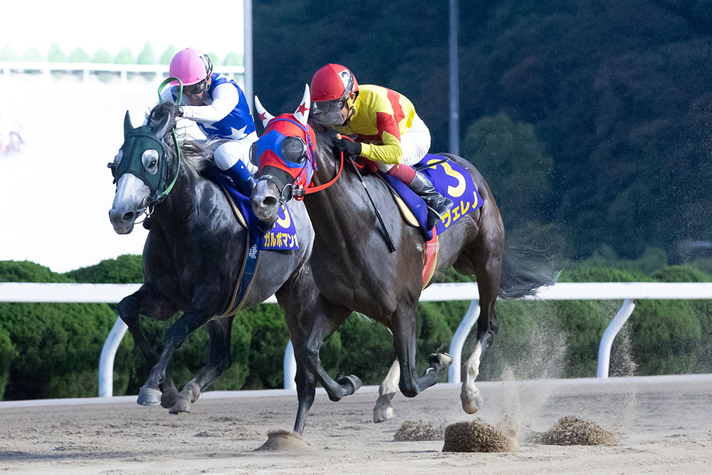 ヴェレノは北海道デビューで12月に高知へ転入。3月に高知2勝目を挙げると、そこから今回の勝利まで9戦連続連対と一気に力を付けた。ガルボマンボとはこれまで8度直接対決があり、高知優駿、黒潮菊花賞など5回先着されていたが、佐賀の地でひとつ勝利を奪い返した形となった。今後は「初遠征だったので帰って馬の様子を見ながらになるが、高知では11月まで3歳のレースがないので、県外を使うかもしれないですが、まだ未定です」(宮川真衣調教師)とのこと。