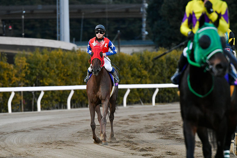 いいスタートを切って道中もリラックスして走っていたんですけど、古馬とは初めてだったので、この馬のペースと、気分を重視しながら追走しました。矢野騎手の馬(セパヌイール)の手応えがあまりよくなかったので、3コーナーから切り替えて外に出したら抜群の切れ味で、来年が楽しみになりました。