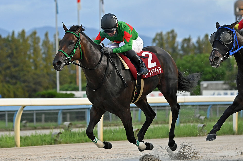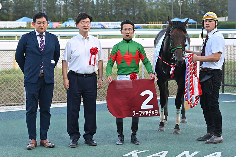勝ったクーファアチャラは、地元で勝ちきれないレースが続いていたが、これが1年ぶりの勝ち星。重賞では昨年5月、中央からの移籍初戦だった門別のヒダカソウカップ以来となる2勝目。昨年9月の秋桜賞(名古屋)でもライバルの厳しいマークに遭いながらハナ差2着に逃げ粘り、グランパラディーゾ(3着)に先着していたが、それ以来の遠征競馬で持ち味を発揮した。