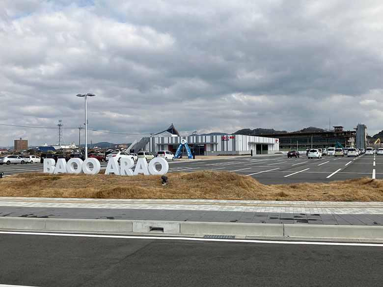 馬場があったほうに回り込んでみた。だだっ広いコース跡の真ん中にはBAOO荒尾が新設されている。その脇に建つアーチには見覚えがあった。それは、かつての競馬場のゴール板に彩りを添えていたもの。そういう形で、そこが競馬場だった証を残したようだ。