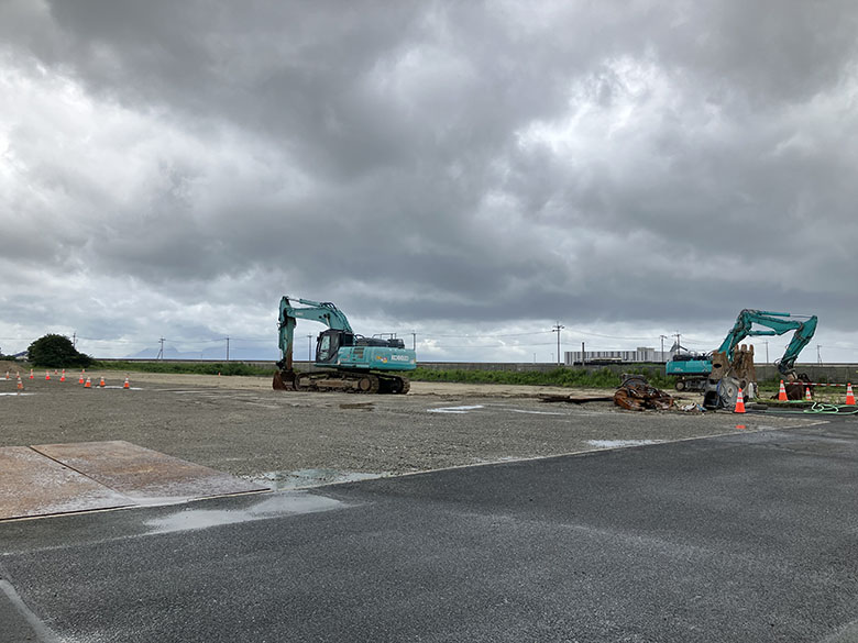コースの跡にはBAOO荒尾の駐車場や、それにつながる道路などが整備されていた。しかし、本格的な跡地の再開発は手つかずのまま。スタンドの解体工事以外に、何かの作業をしている様子は見られなかった。