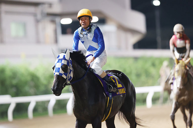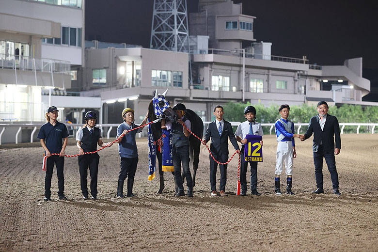 前めにつけてほしいと思っていましたが、うまく先行できたので大丈夫だろうと思って見ていました。暑いなかでもよく餌を食べてくれていたので、馬体重が7キロ増えてくれたのだと思います。予定通りいけば、次走は戸塚記念。歯痒いレースが続きましたが、今後は勝ち続けられるように頑張ります。