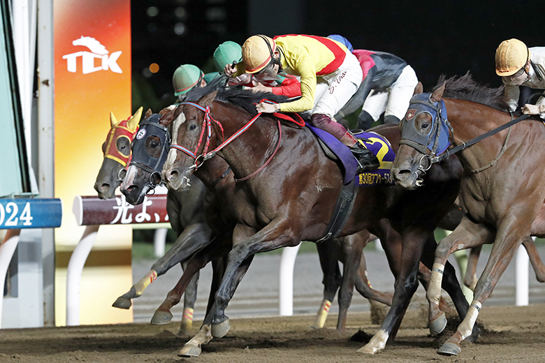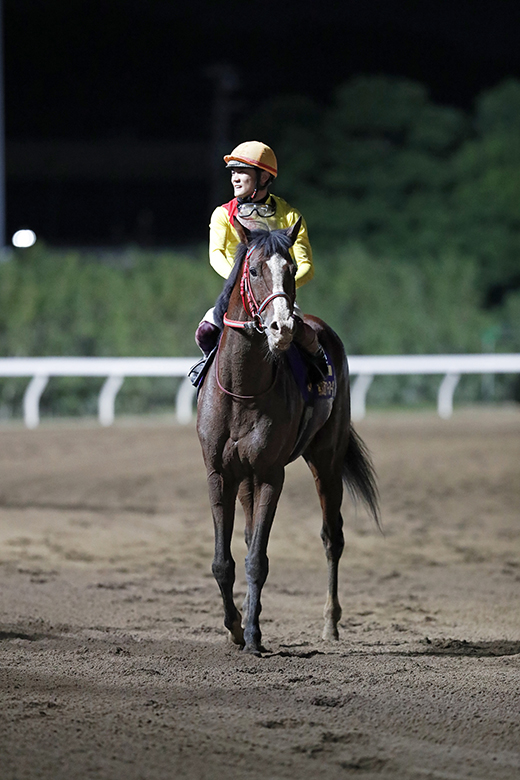 「ズブさが出てきている」と栗田裕光調教師も言うようにヒヤッとする場面もあったが、「馬が近寄ってきたらフワッとした」と手こずりながらも笹川騎手が瞬時にカバー。直線ではもう一段ギアを上げるような伸び脚を見せた。昨年の習志野きらっとスプリント(1000メートル)に続く2つ目の重賞制覇になるが、ズブさが出てきたことで先行策にこだわらず、むしろ距離幅の可能性が広がったと言えなくもない。