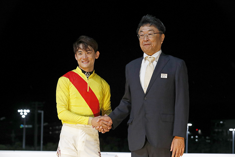 ちょっとズブくなりましたね。あの快速っぷりがなかったのでヒヤっとしましたが、ギシギシ本来の伸びがあれば勝てるなと思いました。90点くらいの走りですね。東京盃、JBC(スプリント)にいきます。この2つを目標に1年間やってきました。