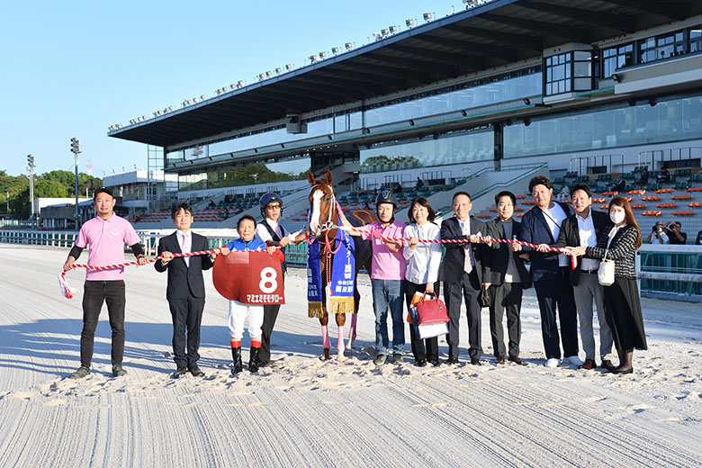 マミエミモモタローの馬名由来は3人の名前。馬主の間宮さとこ氏と、昨年の北海道サマーセールを見に来ていた漫才コンビ・ハイヒールのモモコさんと友人のエミさんに、牡馬のため『タロー』をつけた。個性的な馬名の初代王者は、ここからさらなる高みを目指す。