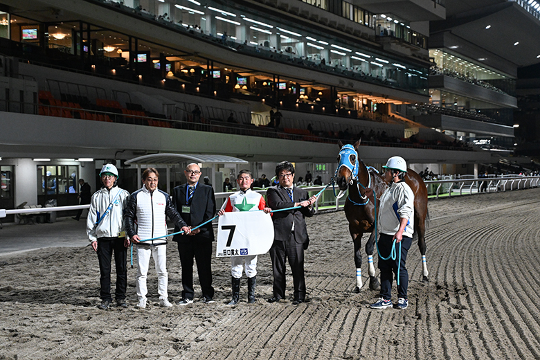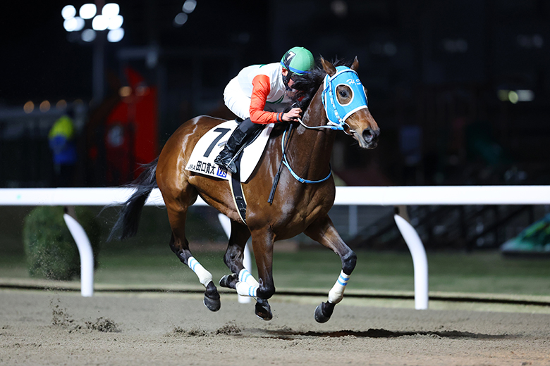 そうした中、開幕戦ともなる第1戦を勝ったのは川崎初騎乗の田口貫太騎手(JRA)。「馬が強かったのひと言です」と、単勝1.1倍の断然人気に応えた。田口騎手はJRAでも単勝1番人気での勝率が54.2%と非常に高く、それをここでも発揮した。レースはスタートこそひと息だったが、3番手外につけると、4コーナーで先頭に並びかけて5馬身差で完勝。