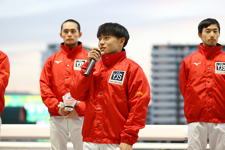 中団からという指示だったので、スタンド前は「先生、すみません」と思いながらも、落ち着いて今できる自分なりの競馬を、と思いました。ファイナルで勝ててポイント獲得以上に嬉しいです。今年の栗東滞在時に勝たせてもらったテーオーレガシーに中山第2戦で乗れるので、馬の力を全力で発揮させたいです。