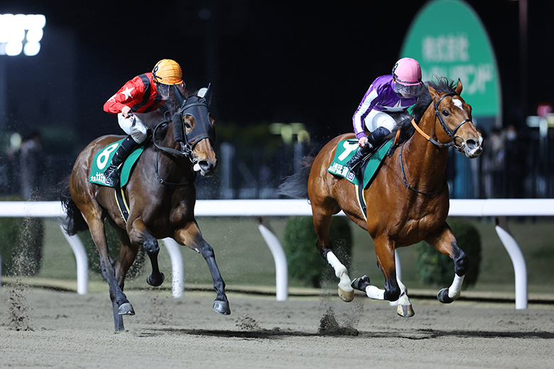 第2戦は確たる逃げ馬不在とも思えるメンバー構成。そうした中、大井時代は先行することが多かった馬に騎乗した永野騎手が外枠から先手を取ると、2000メートルという距離もあってかスローペースで進んだ。2番手外でグッと手綱を抑えていたのは大木天翔騎手(大井)。3コーナーで先頭に並びかけて一旦は前に出たが、直線で盛り返した永野騎手が追い比べをクビ差で制した。