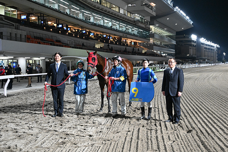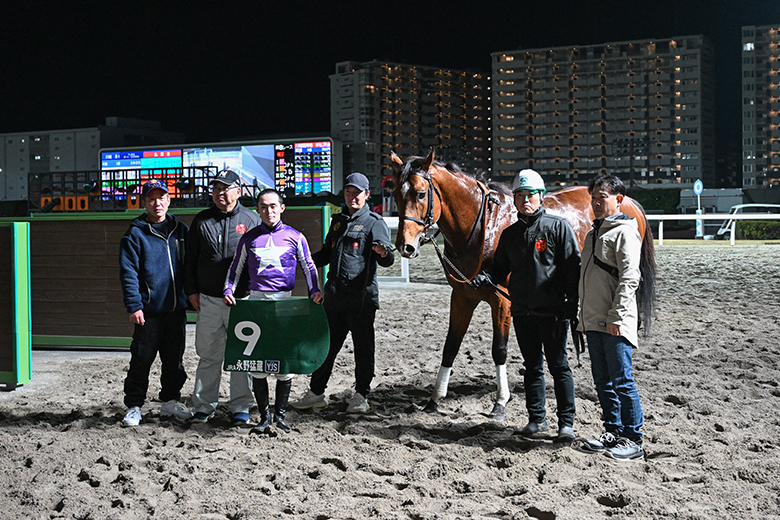 2着に菅原涼太騎手(大井)。道中はロスなく運び、直線で「今開催で伸びる場所」と地元関係者が話す、内から4~5頭目を伸びた。さらに2馬身差の3着に「勝ち馬の後ろにつけましたが、勝負所から置いていかれました」と横山琉人騎手(JRA)、4着は永野猛蔵騎手(JRA)、5着に地元の新原周馬騎手だった。