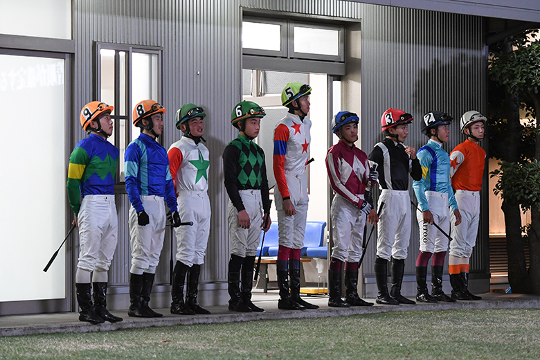 関東圏にある競馬場ということもあり、西日本の騎手は地方・JRA計8名中6名が川崎初騎乗。大畑慧悟騎手(愛知)は「兄弟子の丸野勝虎騎手から『直線は長いけどコーナーが急で3コーナーは外に振られるから気を付けて』とアドバイスをいただきました」と話したように、各騎手は川崎特有のきついカーブを意識していた。