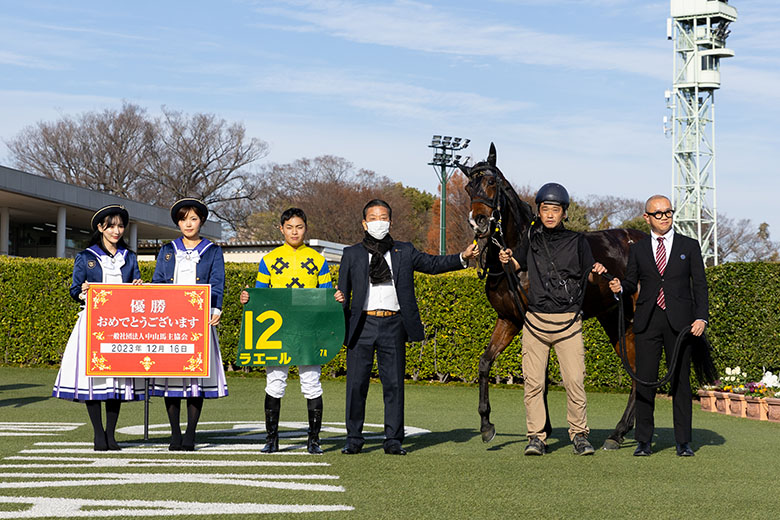 レースの直後に行われたインタビューで『JRA初勝利』のプラカードを掲げたのは、彼の師匠の佐藤博紀調教師の子息・佐藤翔馬騎手(JRA)。地方競馬とJRAの垣根を越える競馬人の繋がりを、改めて感じさせたシーンだった。