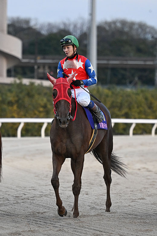 57キロだったので心配していましたが、しっかり仕上がっていたので抜群の切れ味でした。頭数が多い分、進路を選びながらの騎乗で4コーナーでは不利を受けましたがしっかりとした末脚を出してくれました。この仔は将来繁殖という仕事もありますので、来年は内容の濃いレースをしていきたいです。