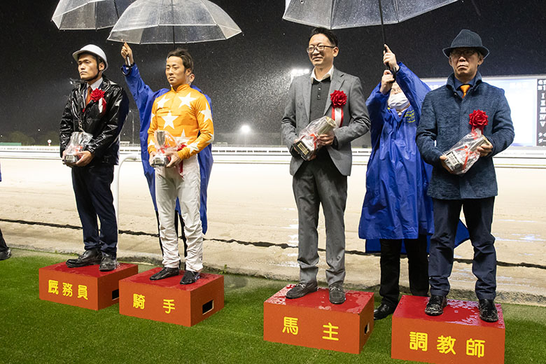 一方、逃げたダヴァンティは3着から更に3馬身差の4着。昨年のネクストスター金沢の後順調に使えずにシーズンを終えていたそうで、栗原大河騎手は「休み明けの前走も時計自体は遅かった。今回は厳しい戦いになるとは思っていた」と、初めての遠征だけではなく、復調途上にある現状も敗因に挙げた。