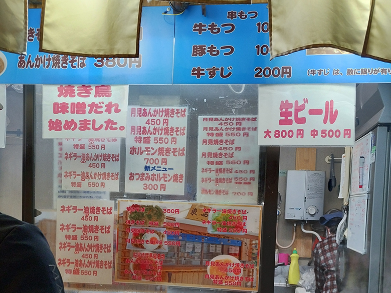 その影響で、スタンド内にあったお店の多くは3階のテラスにある仮設店舗で営業中。さっそく注文しようと店頭に貼られたメニュー表を見たらビックリ。