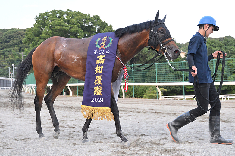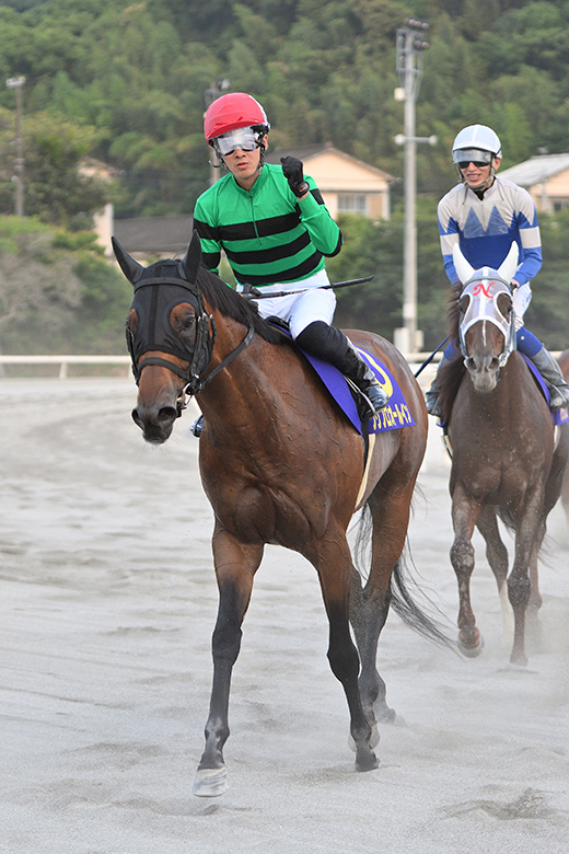 レースはこの馬の形になったので『これで負ければ仕方ないな』という気持ちで見ていました。すごく走りのリズムがよくて、フォームも美しい馬です。臆病なところがあるのですが、レースではそこがいいほうに出ているようです。状態を見て問題がなければ、三冠目の黒潮菊花賞(8月4日)へ向かいます。