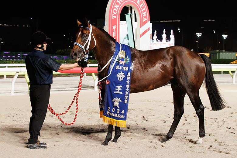 キングズソードは昨年の大井・JBCクラシックJpnI以来となるビッグタイトル獲得。今年に入ってからの2戦は1600メートルで結果が出ていなかったが、実績のある舞台で巻き返した。「JBCの時と同じ枠(8枠)だったので良いイメージでレースができると感じました」と寺島良調教師。