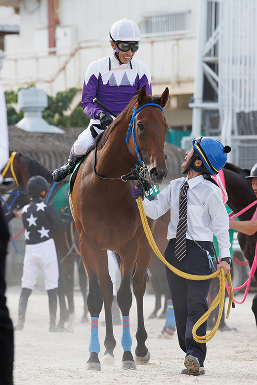 最近は川原(正一)さん以外は自分より若いジョッキーと乗っていますが、今日は豊くんが乗りに来てくれて、なんだかホッとしました(笑)。ひとつ勝ててよかったです。馬が強かったので、厩舎の方々にお礼を言いたいですね。園田では週に3日間レースをやっているので、ぜひ皆さん遊びに来てください。