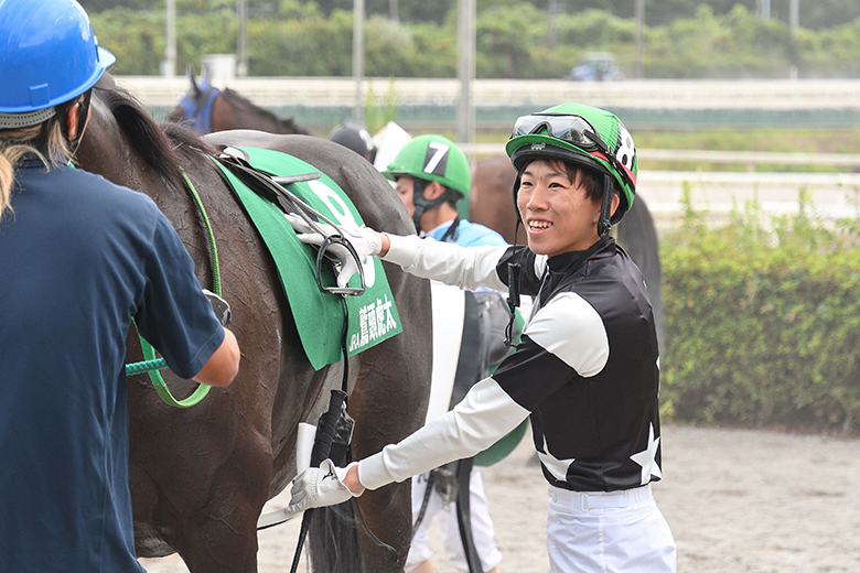 返し馬から調子が良さそうでした。前のペースが流れていて展開もハマりましたし、馬を信じてじっくり追いました。ゴール前は外の馬が脚を伸ばしていたので、勝ったか分かりませんでした。初めての遠征も楽しめて、一つ勝てたのでいい思い出になりました。