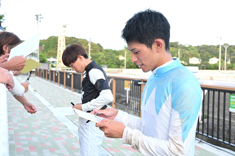 一方で驚いたのは2着泉谷楓真騎手(JRA)が中団やや後方から差してきたこと。「道中は気難しさを見せていましたが、ハミを取ってからはしっかり伸びてくれました」と汗を拭った。3着大久保友雅騎手(JRA)は「外枠だったけどできれば内を取りたくて、いい位置を取れました」、4着小沢大仁騎手(JRA)、そして5着の長江慶悟騎手(笠松)は「外の馬が速くて控えたけど、無理してでも行った方がよかったのかな」と唇を噛んだ。