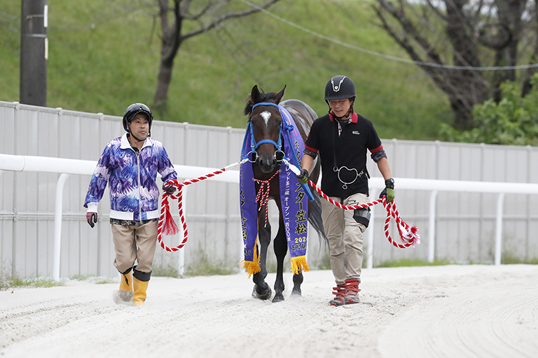 藤原騎手は調教から乗ってくれていて、今回は前走よりもペースを上げて逃げるという作戦で送り出しました。門別では気性的に難しい面があったそうですが、こちらでは今のところそこまでの雰囲気ではないですね。自分の競馬ができなかったときの心配はありますが、将来性を含めて楽しみな存在です。