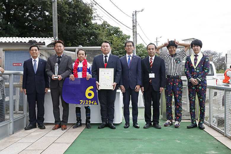 逃げ切ったブリスタイムは、笠松に移ってから3連勝。8歳上の半兄にジャパンダートダービーJpnIを制したヒガシウィルウィンがいる血統とはいえ、門別では6戦とも6着以下だったのだから大変身だ。