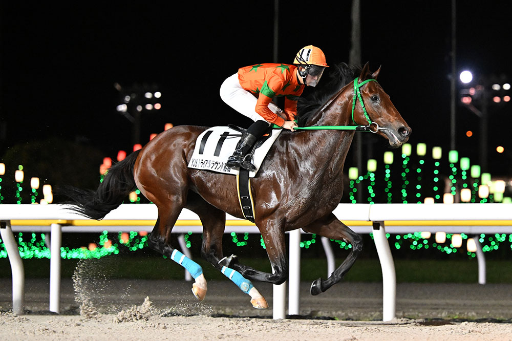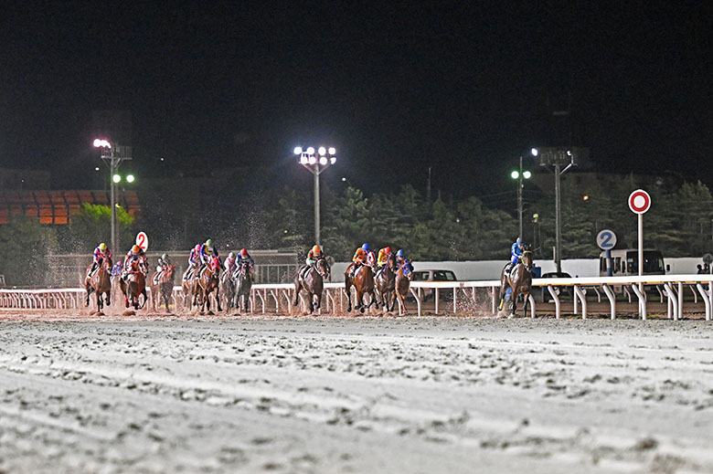 向正面に入ってもペースがあまり上がらない流れは、完全に逃げ先行タイプが有利。しかしそれが当てはまったのは先頭の加藤騎手だけだった。3コーナー手前から横山琉人騎手(JRA)、原優介騎手(JRA)が位置取りを上げたが、加藤騎手の直後を進んだ鷹見騎手、小林脩斗騎手(JRA)などは失速してしまった。