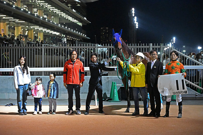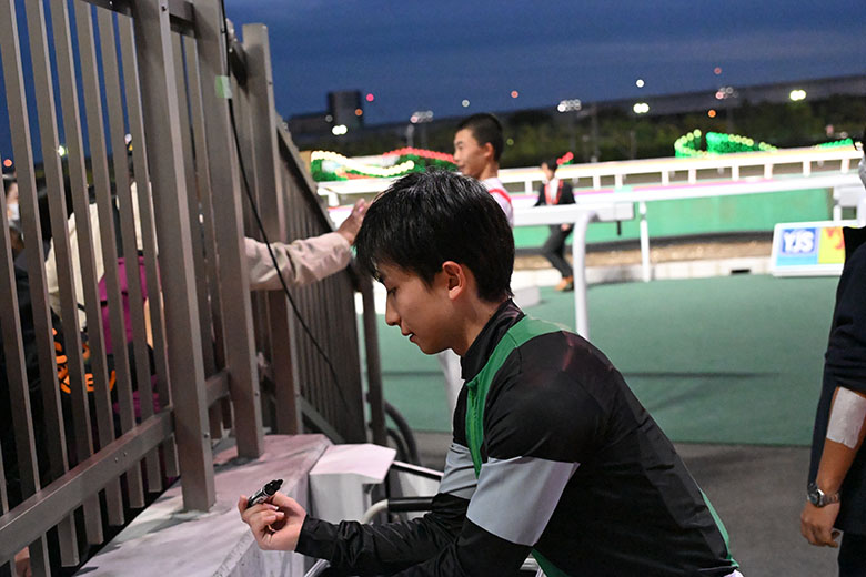 3着からクビ差の4着は田中洸多騎手(大井)。「気難しいタイプと聞いたので、馬なりで様子を見ながら進めました。でも初めて乗る馬ですからね。もう1回乗せてもらえれば違う結果になると思うんですけど」と苦笑い。逆に勝った加藤騎手は「逃げたのは作戦。次も頑張れば4位以内が狙えますよね」と笑顔で装鞍所に向かっていった。