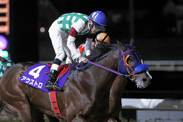 アウストロはダノンレジェンド産駒の4歳牡馬。22年11月に浦和でデビューし、昨年10月はまだC1クラスだったが、そこから9戦パーフェクト連対で重賞タイトルを獲得した。