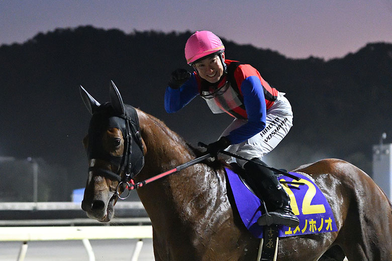 陣営はユメノホノオが心身共に成長途上であることや、夏負けしやすいことをふまえて、秋に予定していた遠征計画を白紙に戻した。じっくり時間をかけて調整したことが奏功して、調教を担当する山頭信義厩務員いわく「トモの蹴りがよくなっています。これまでで一番いい状態でした」。ユメノホノオのポテンシャル。田中厩舎の馬優先主義。吉原騎手の手綱さばき。なにもかもが噛み合って、進化と連覇に行き着いたのだろう。砂けむり舞う高知競馬場で、進化したユメノホノオに衝撃を受けた大晦日だった。吉原騎手は言う。