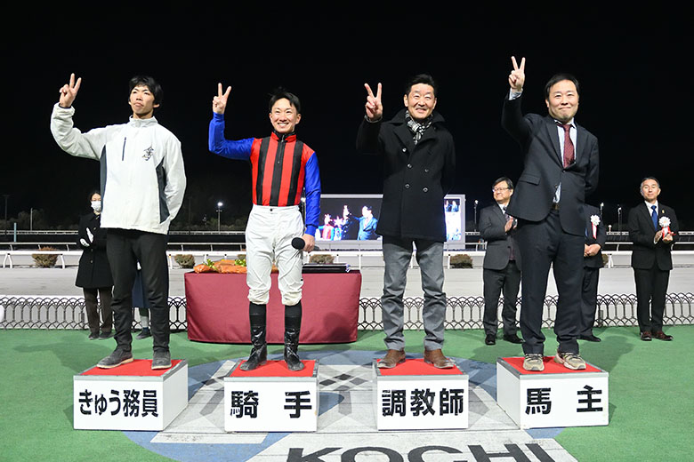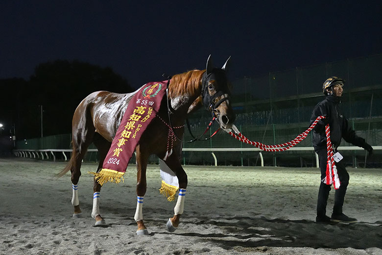 ところがユメノホノオは好スタートを決めた。4~5番手の位置取りで、内のガルボマンボをマークする形でレースを進める。2周目の向正面、ポケットから抜け出そうとするガルボマンボ。すかさずユメノホノオが蓋をしながらスパートをかけて一気に先頭へ。そのまま加速して後続を突き放し、大歓声に包まれて高知県知事賞を連覇した。スタミナを発揮したロッキーサンダーが3馬身差の2着、直線で鋭く伸びたロードブレスがクビ差の3着に入った。10番人気エイシングラスが4着に健闘。ガルボマンボは5着に敗れた。
