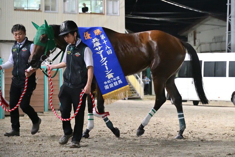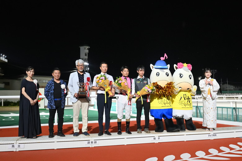 「逃げにはこだわらず、折り合いだけを気を付ければ大丈夫かなと思っていました」と兵庫移籍後7戦すべてで手綱をとる杉浦健太騎手が話せば、田中一巧調教師も「この馬のリズムを崩してまで逃げなくてもいい、と騎手に伝えていました」とプランを明かした。